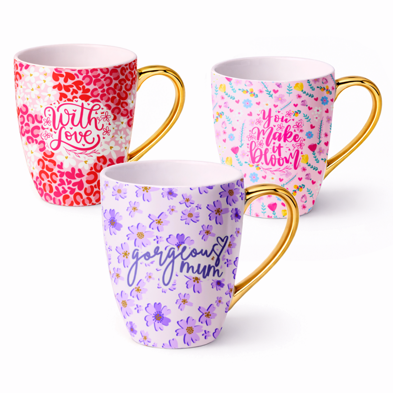 These gorgeous mugs come with a gorgeous gold chrome handle, giving them that extra WOW factor.