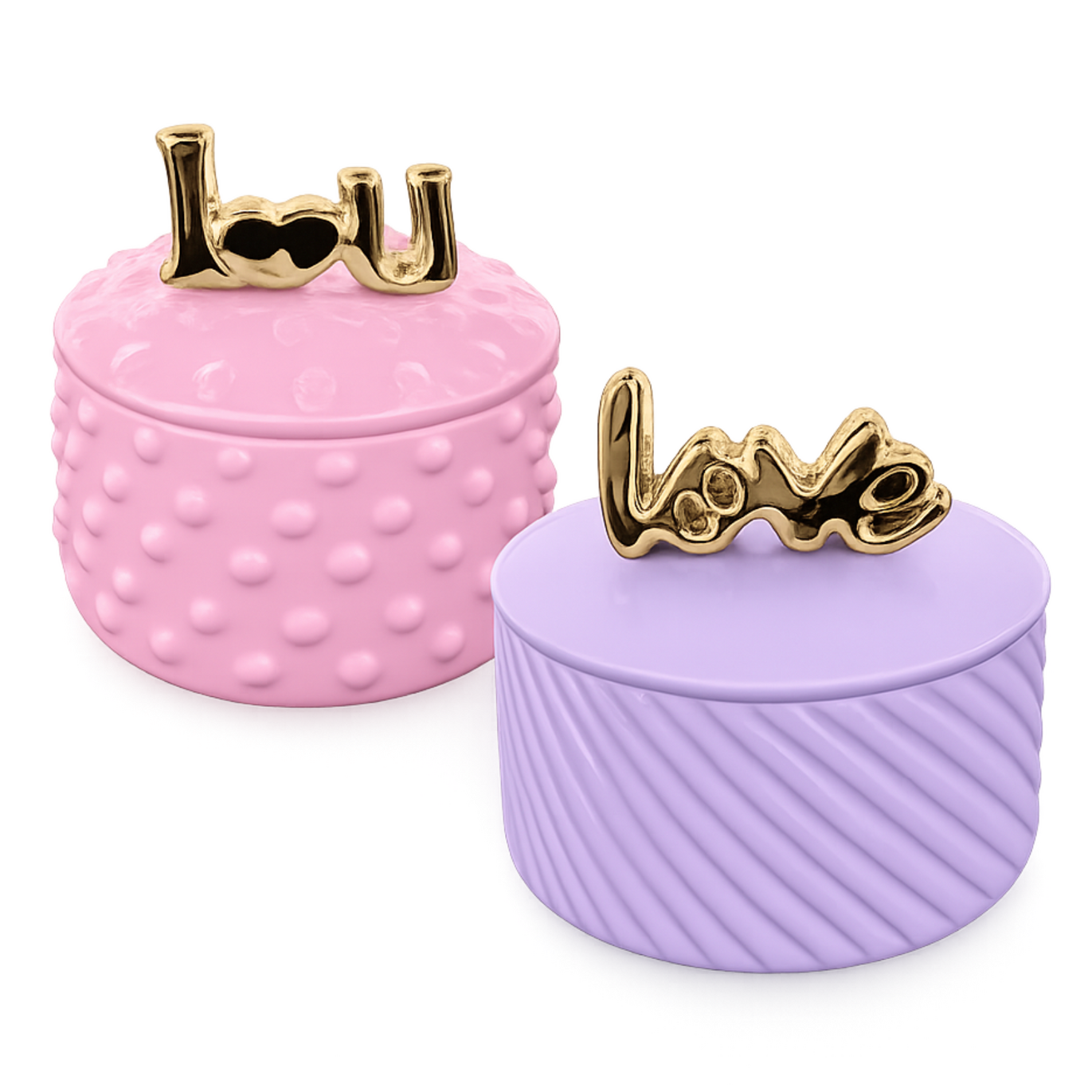 Decorative gold “Love” detail on lid