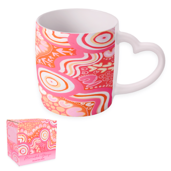 This stunning 360ml heart-handle mug has been created in collaboration with contemporary Aboriginal artist Bayley Mifsud, celebrating storytelling through colour, symbolism and connection to Country.