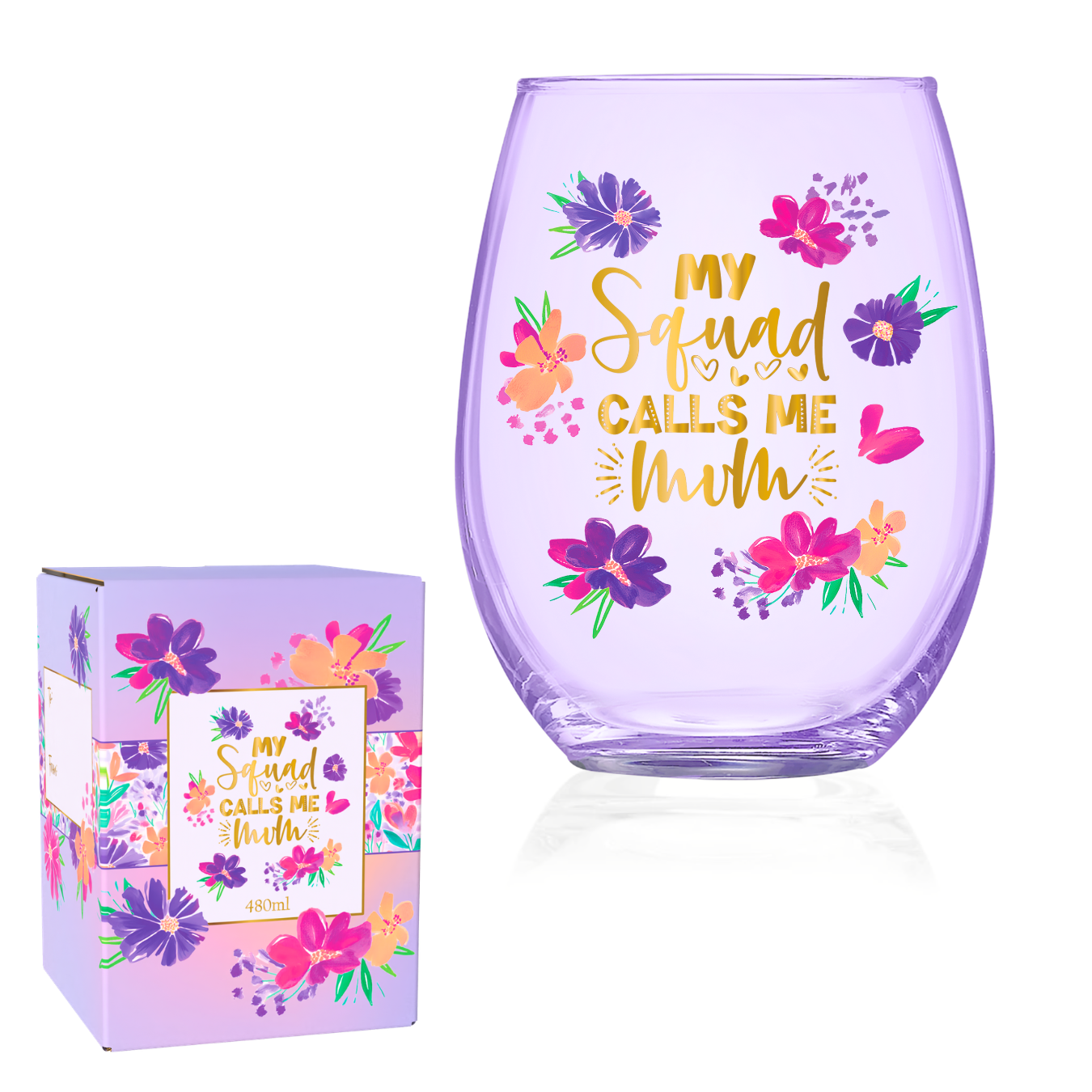 These decorated wine glasses are always a great gift! They are gorgeously packaged individually in a bright matching box with gold foil embossed print.