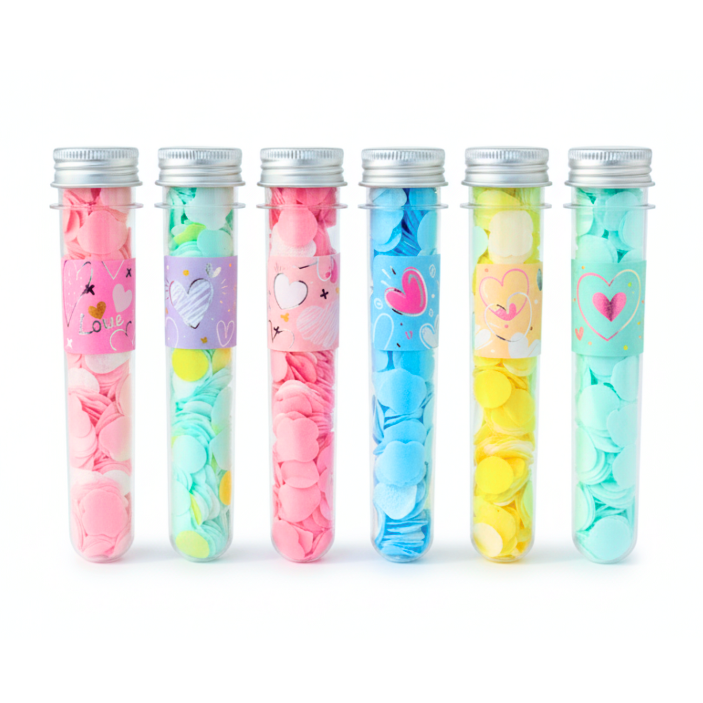 Assorted pastel colours and heart designs