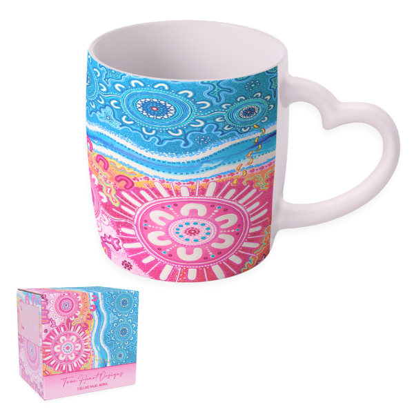 This stunning 360ml heart-handle mug has been created in collaboration with contemporary Aboriginal artist Delphine Schwarze, celebrating storytelling through colour, pattern and connection to Country.